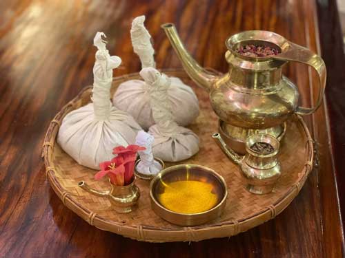 Herbal blends are freshly prepared on-site, tailored to your unique dosha, with personalized pastes and decoctions prepared for every session.