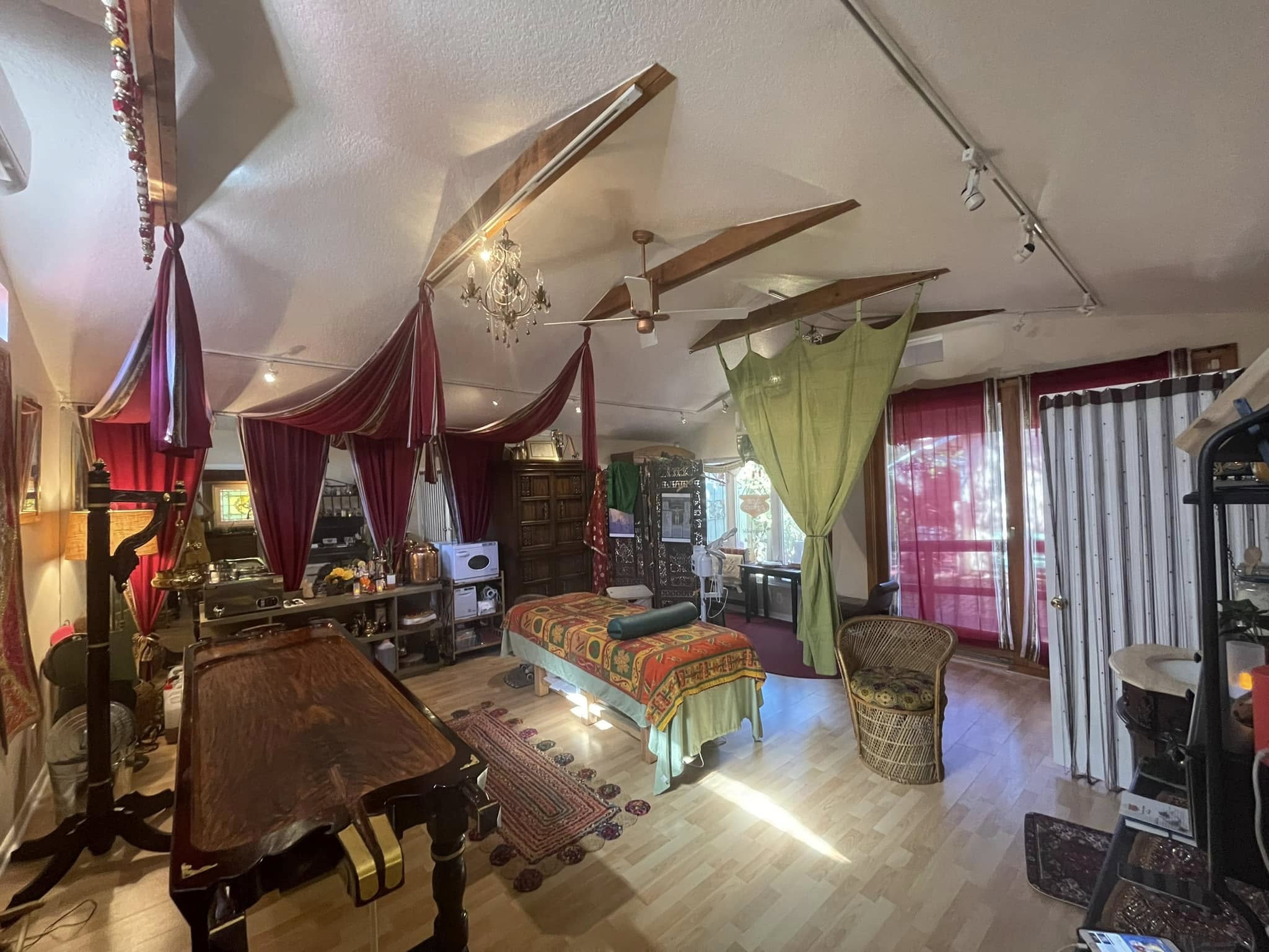 Draped in rich saris, filled with the fragrance of herbs and the shimmer of brass, the studio evokes a small temple of India, inviting you to slow down, reconnect, and receive care in its most loving, authentic, and spiritual form.
